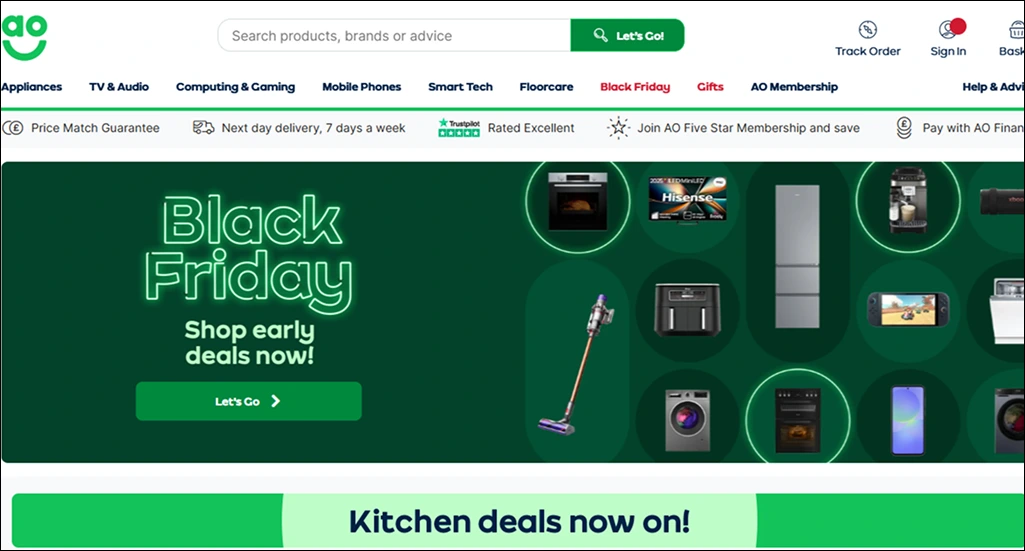 6. AO.com – Massive Black Friday price cuts on appliances and gadgets.