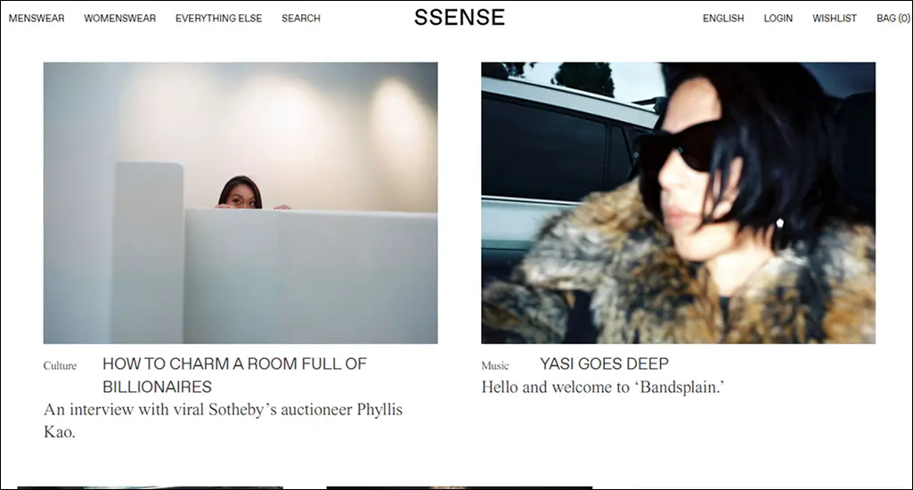 SSENSE is a leading luxury fashion retailer known for its modern, trend-forward curation and its strong mix of designer, contemporary, and streetwear brands. Based in Montreal, it offers a wide lineup of high-end labels alongside emerging designers you rarely find elsewhere. This makes SSENSE a top destination for shoppers who want luxury pieces with a more fashion-forward edge.
