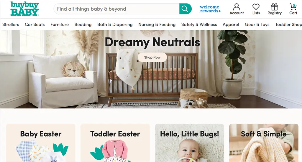 buybuy BABY stands out as a specialized retailer dedicated entirely to baby products, making it a strong choice for parents who prefer a more curated and guided shopping experience. Unlike general marketplaces, the platform focuses exclusively on baby essentials, offering a carefully selected range of products across categories like strollers, car seats, nursery furniture, feeding items, and safety gear.