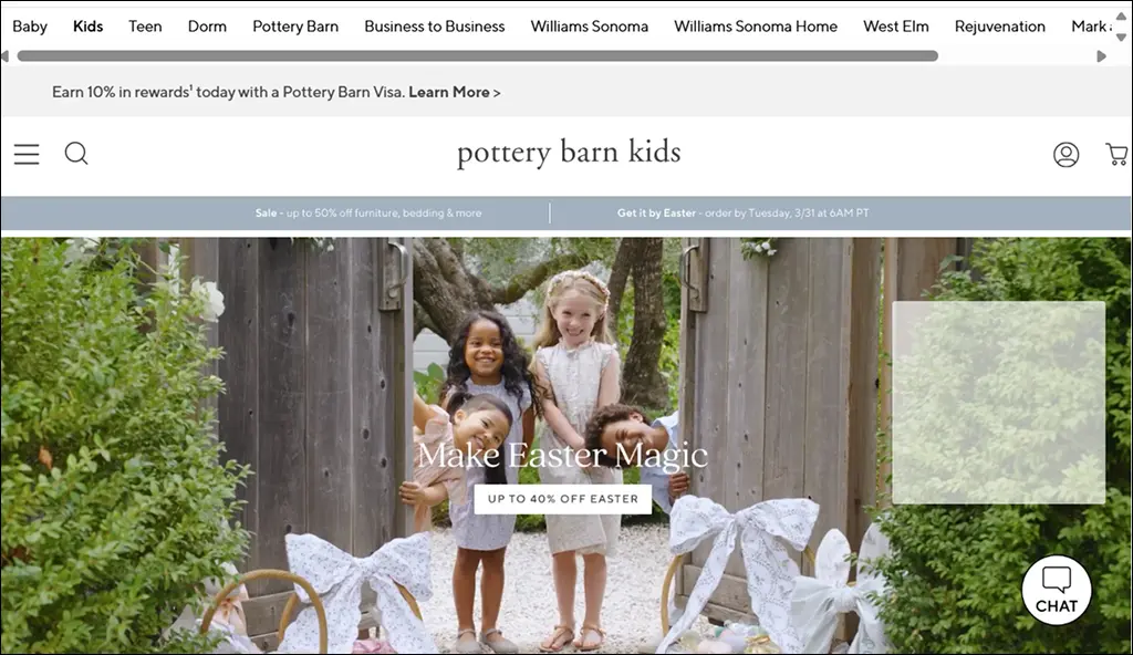 Pottery Barn Kids is a premium destination for nursery furniture and décor, making it one of the best online baby stores for parents focused on design, durability, and long-term value. As part of Williams-Sonoma Inc., which generates billions in annual revenue, the brand benefits from strong supply chains and consistent product quality across categories.
